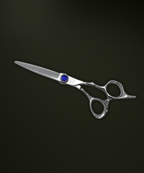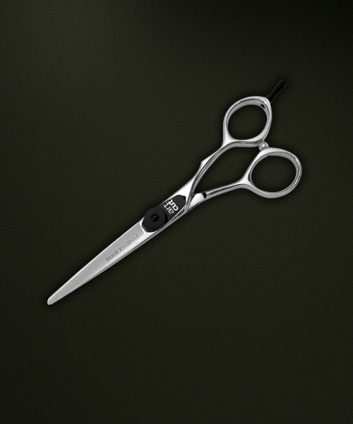 Die Friseurschere Shoji ist ein Linkshandmodell und besticht durch ihre ergonomische, konische Grundform.